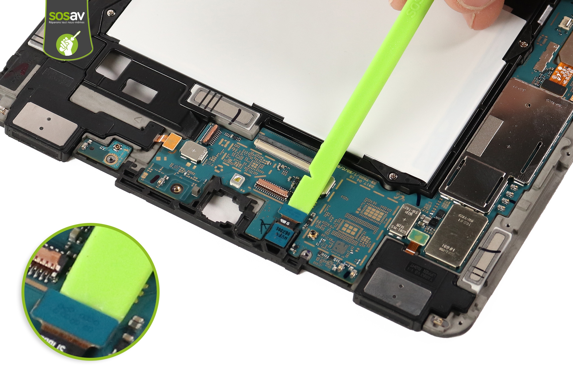 Poursuivez en débranchant la nappe du lecteur SIM