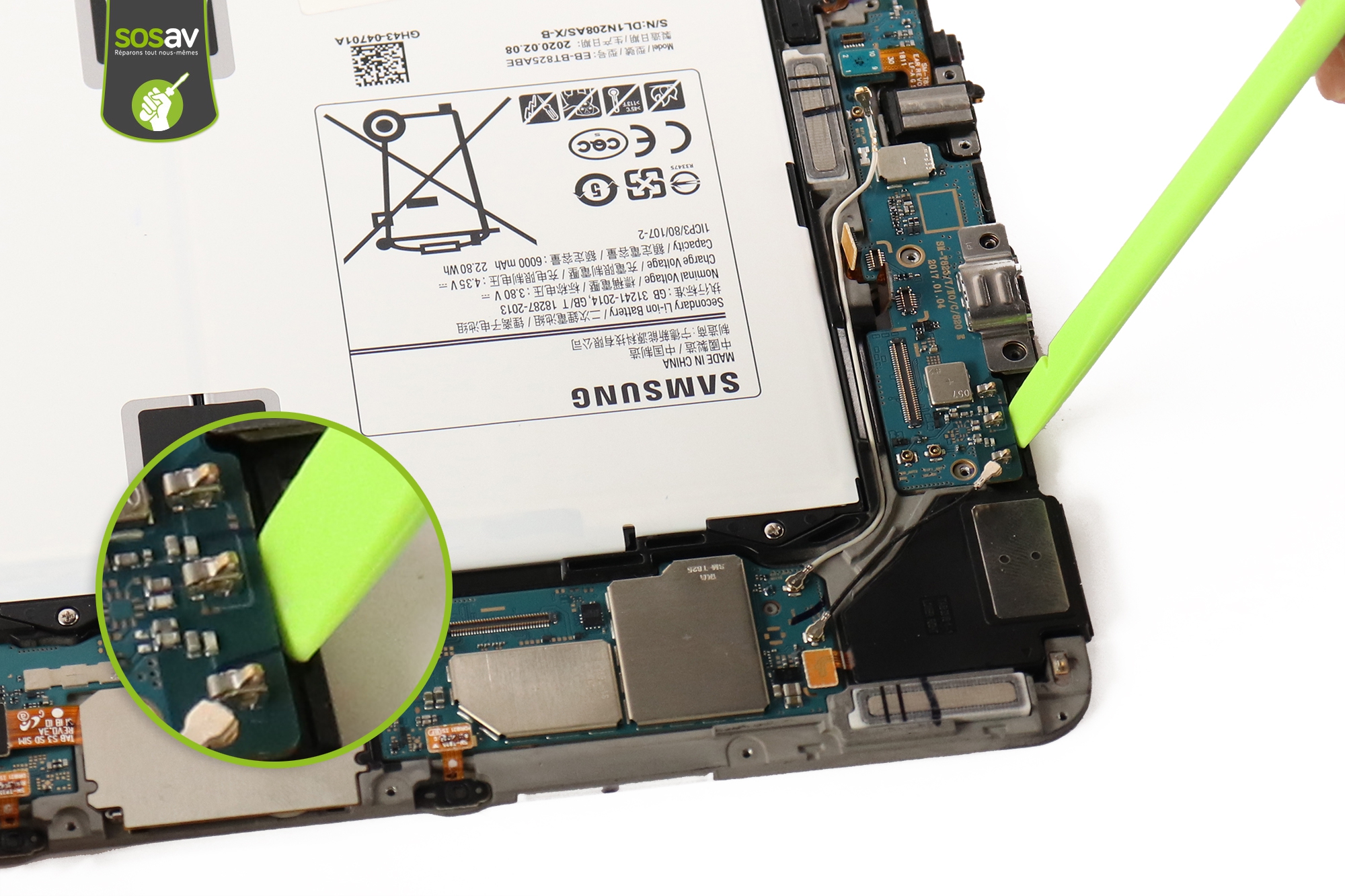 Avant toute chose, déconnectez la nappe de la batterie.Mesure de sécurité pour éviter les éventuels courts-circuits lors de la suite de la réparation Galaxy Tab S3 9.7".