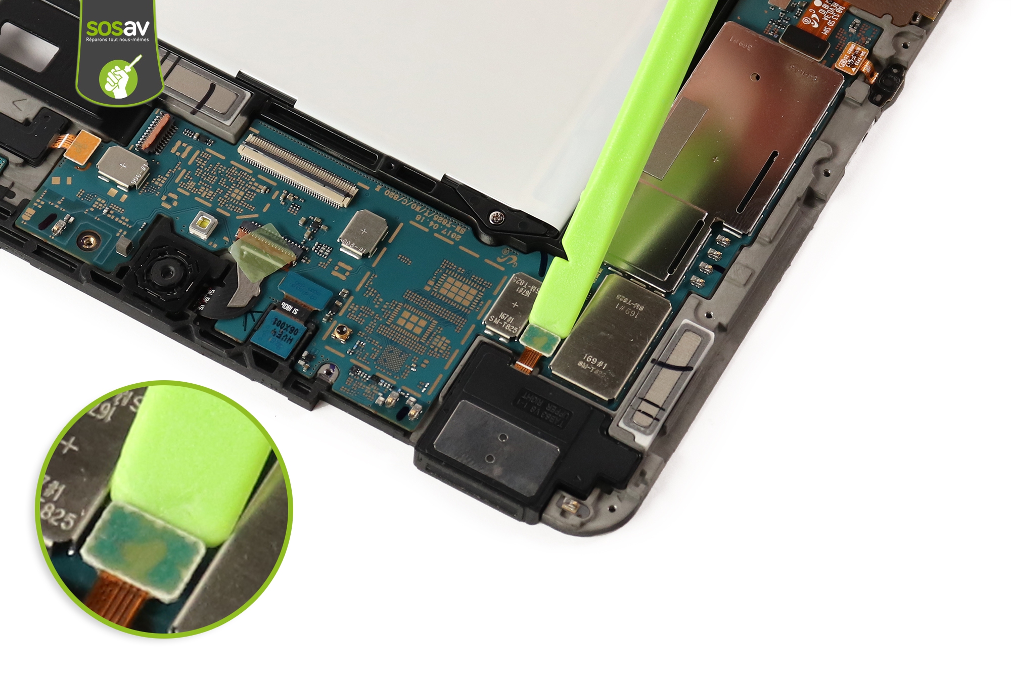 Avant toute chose, déconnectez la nappe de la batterie.Mesure de sécurité pour éviter les éventuels courts-circuits lors de la suite de la réparation Galaxy Tab S3 9.7".