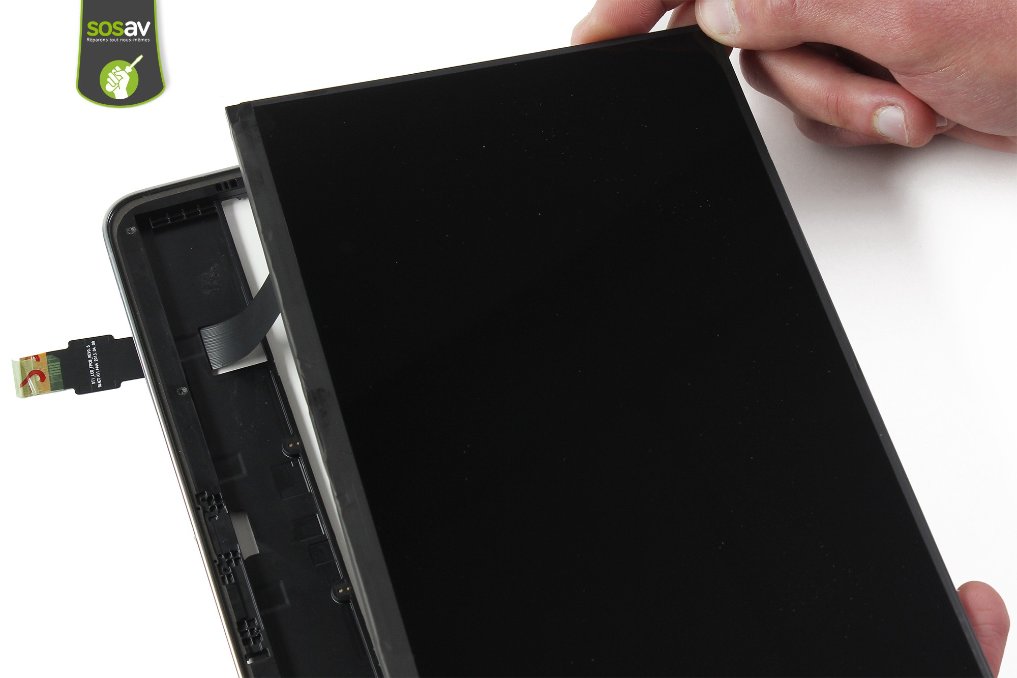 Glissez la spatule en nylon dans l'interstice écran LCD - châssis et faites très délicatement levier.Saisissez l'écran et sortez-le de son logement.