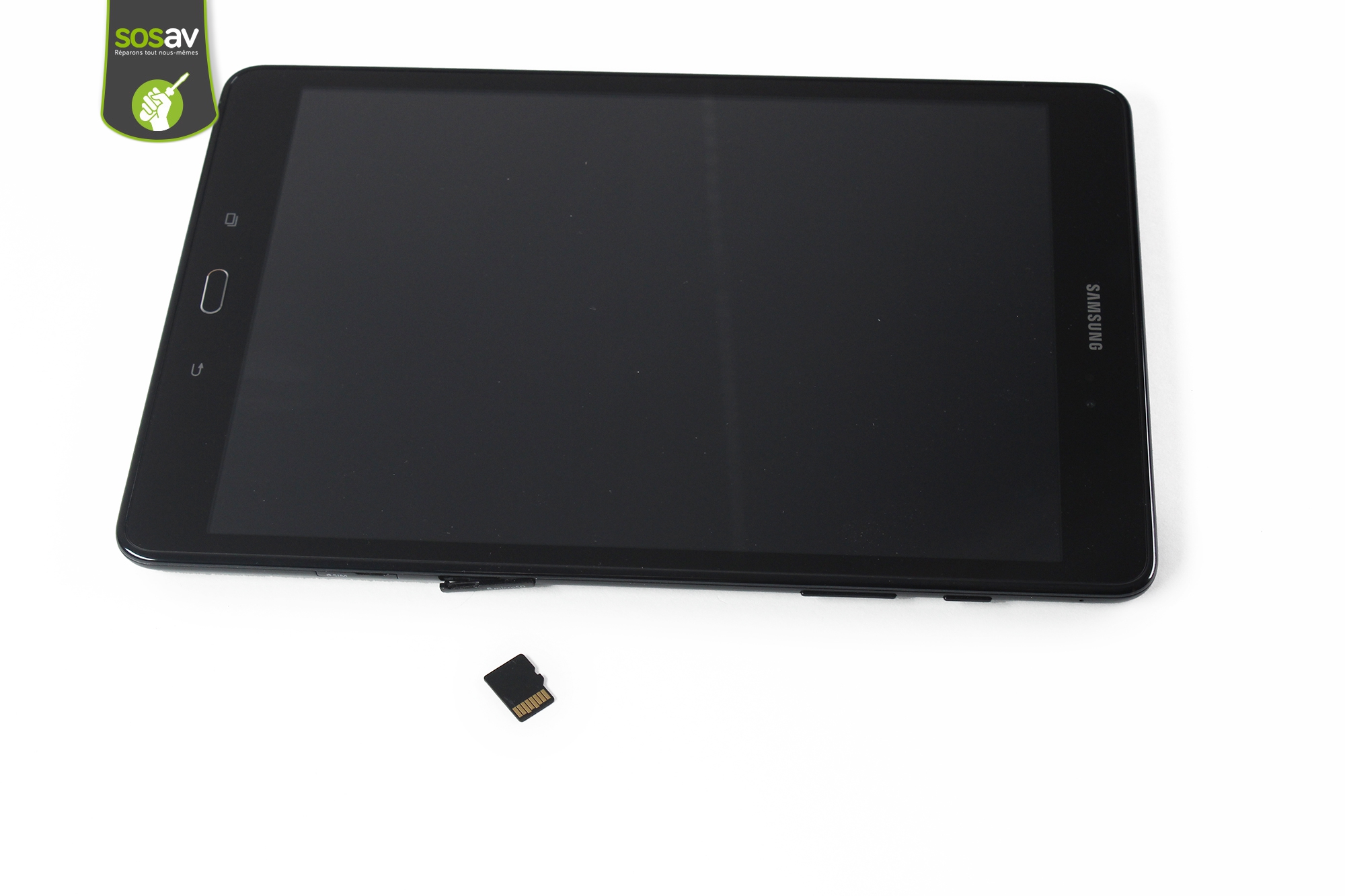 Un des avantages, et pas des moindres, de la Galaxy Tab A 9,7", est qu'il est possible d'y mettre une micro SD. Pas assez d'espace de stockage dans la tablette ? Insérez une micro SD et les soucis de mémoire ne seront plus qu'un lointain souvenir. Quoi ? Vous ne savez pas comment mettre cette carte ? Pas de panique à bord, les techniciens SOSav ont justement tout prévu pour vous aider ! Suivez ce guide de réparation pour retirer votre carte micro SD Galaxy Tab A 9.7" dans les règles de l'art, en seulement quelques instants. Et hop, vous pouvez maintenant y mettre la micro SD que vous voulez !